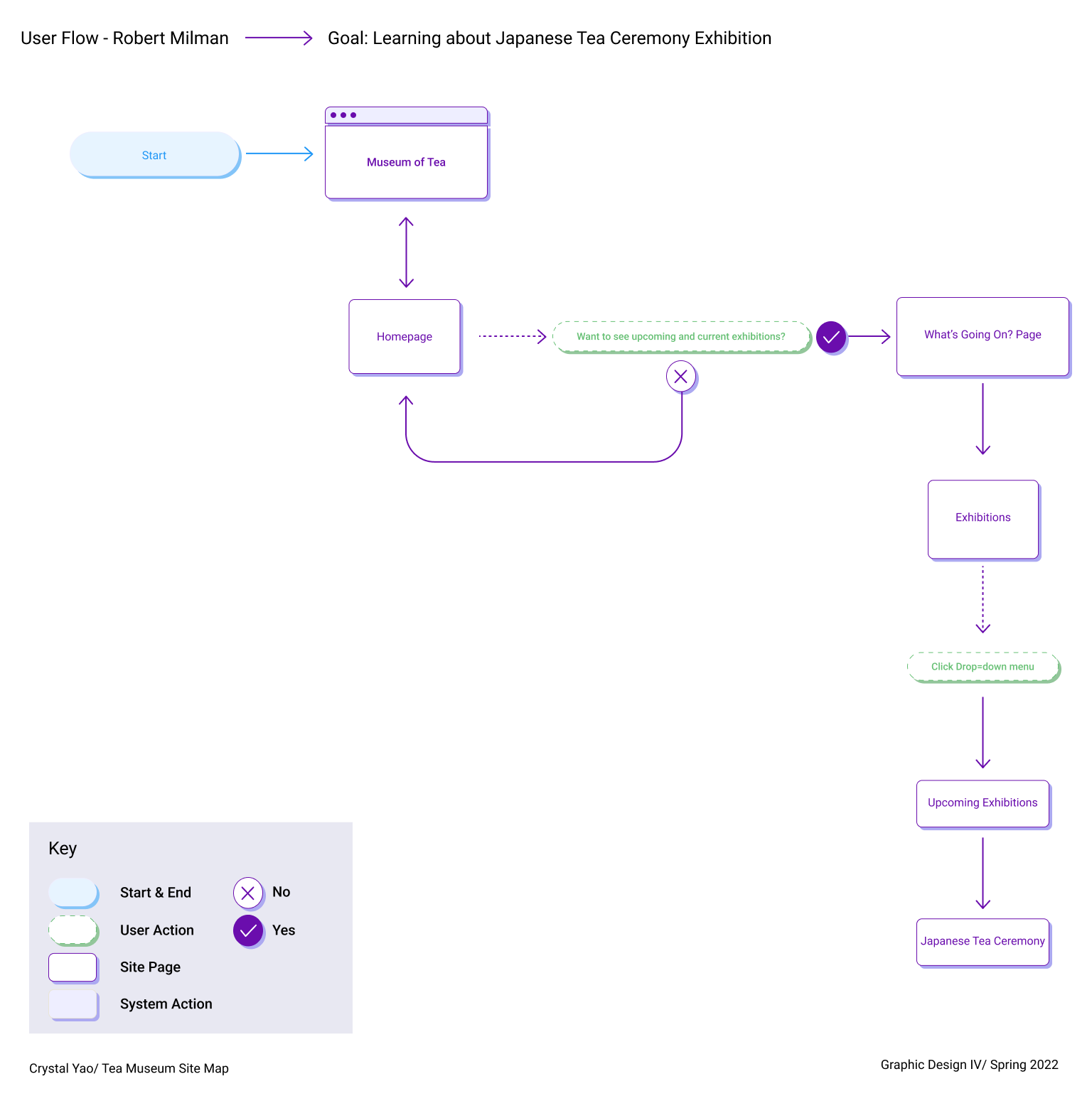 I created a simple user flow that identifies a user’s navigational journey throughout the website.